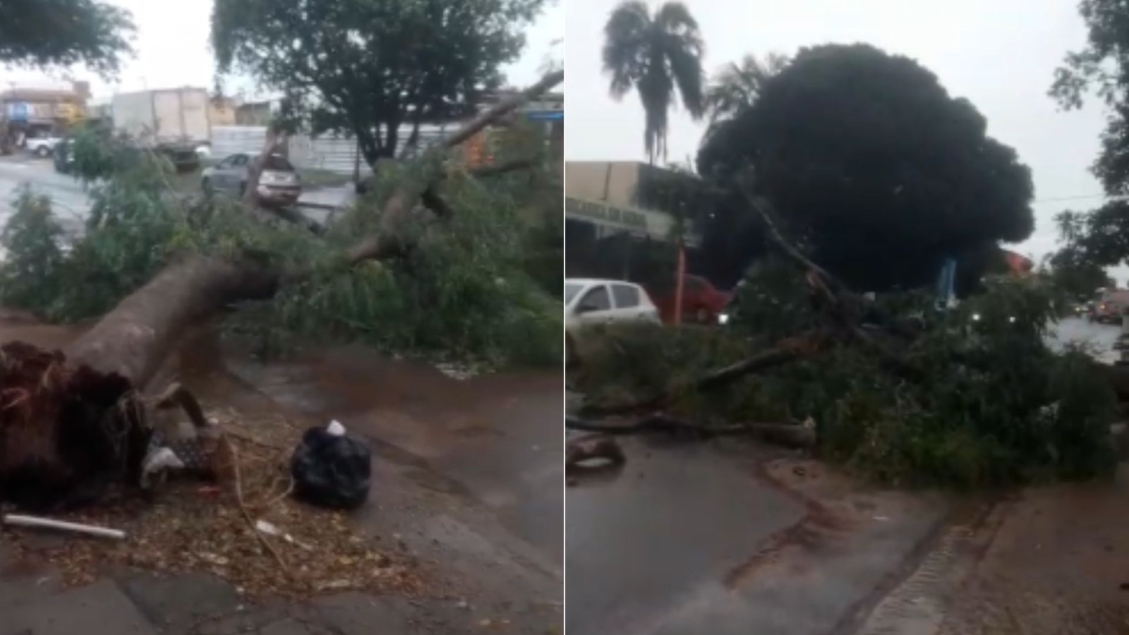 Árvore cai em avenida durante chuva e causa interdição em trecho no Jardim São Conrado