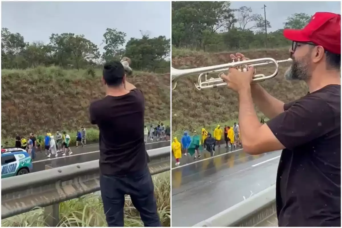 A caminhada do deputado Nikolas Ferreira (PL-MG) foi alvo da ironia do trompetista Fabiano Leitão, o TromPetista, de 45 anos, que ficou conhecido por tocar