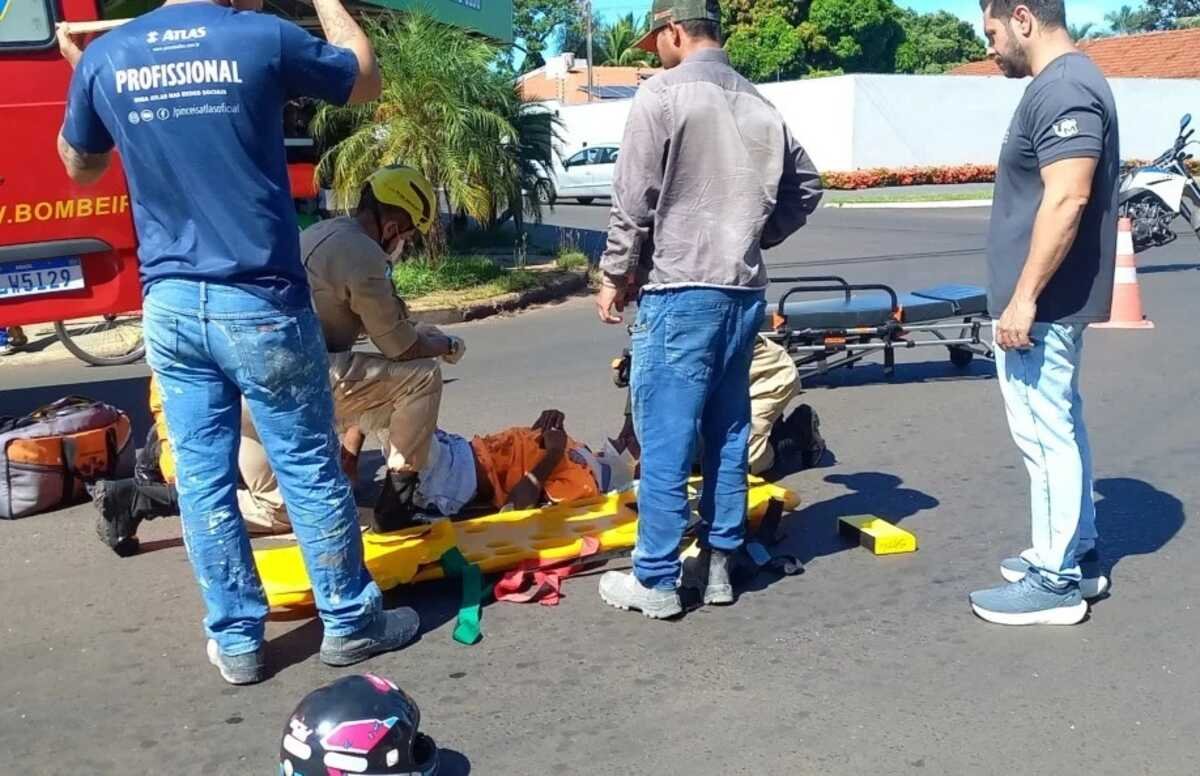 Um grave acidente envolvendo uma motocicleta e um carro parado no semáforo foi registrado na manhã desta sexta-feira (23) em Três Lagoas, município localizado a