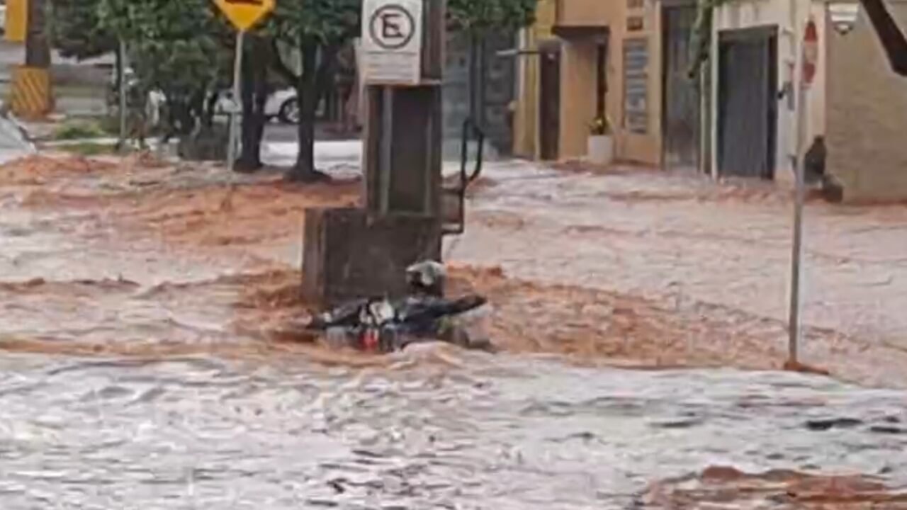 Alagamento na Avenida Tamandaré causa transtornos e arrasta motociclista na tarde de quarta-feira.
