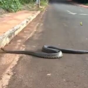 Morador flagra sucuri atravessando rua em Fátima do Sul; vídeo é compartilhado nas redes sociais