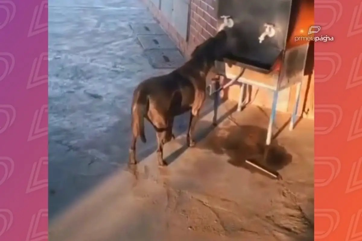 Um cachorro sem raça definida chamou a atenção dos passageiros da Rodoviária de Primavera do Leste (MT) ao ser flagrado bebendo água em um bebedouro