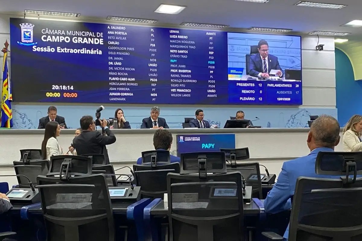 Por unanimidade, a Câmara Municipal de Campo Grande aprovou, durante sessão extraordinária na noite desta segunda-feira (12), o Projeto de Lei Complementar 1.016/26, que suspende