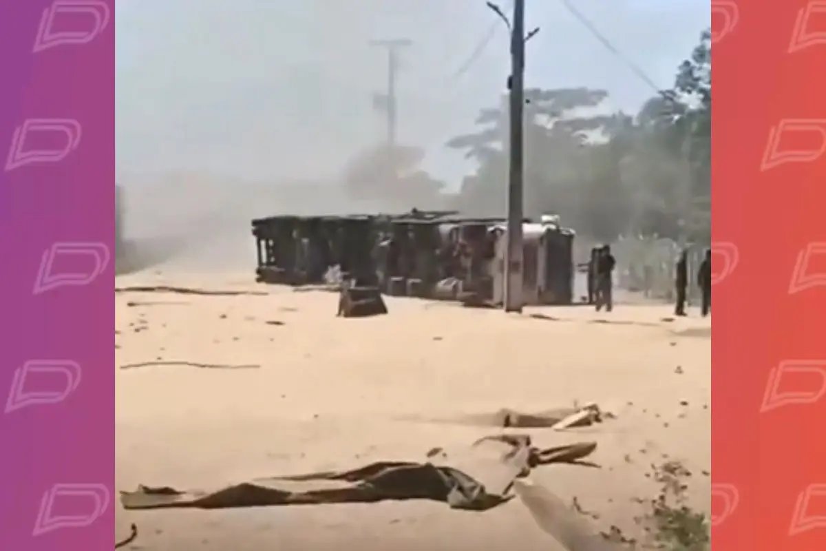 Uma carreta carregada de soja tombou na manhã deste sábado (31), enquanto seguia no sentido sul da BR-364, no km 563, em Nobres (MT). O