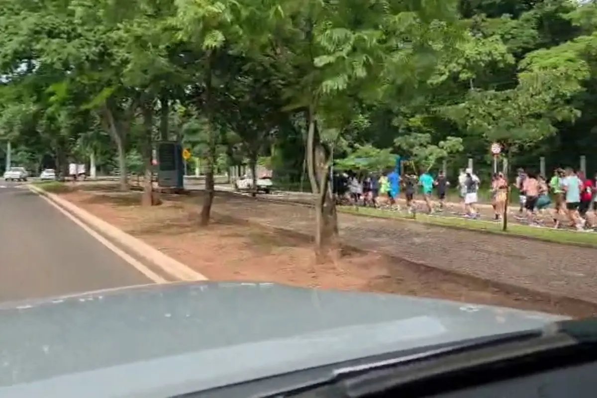 Na manhã desta quarta-feira (31), um empresário que dirigia pelo Parque dos Poderes, em Campo Grande, se deparou um grupo de corrida que ocupava parte