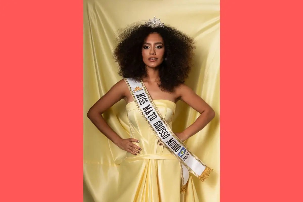 A cuiabana Maria Vitória Rondon, de 21 anos, conquistou o 4º lugar no Miss Brasil Mundo, realizado nesse sábado (31), em Brasília, e recebeu o