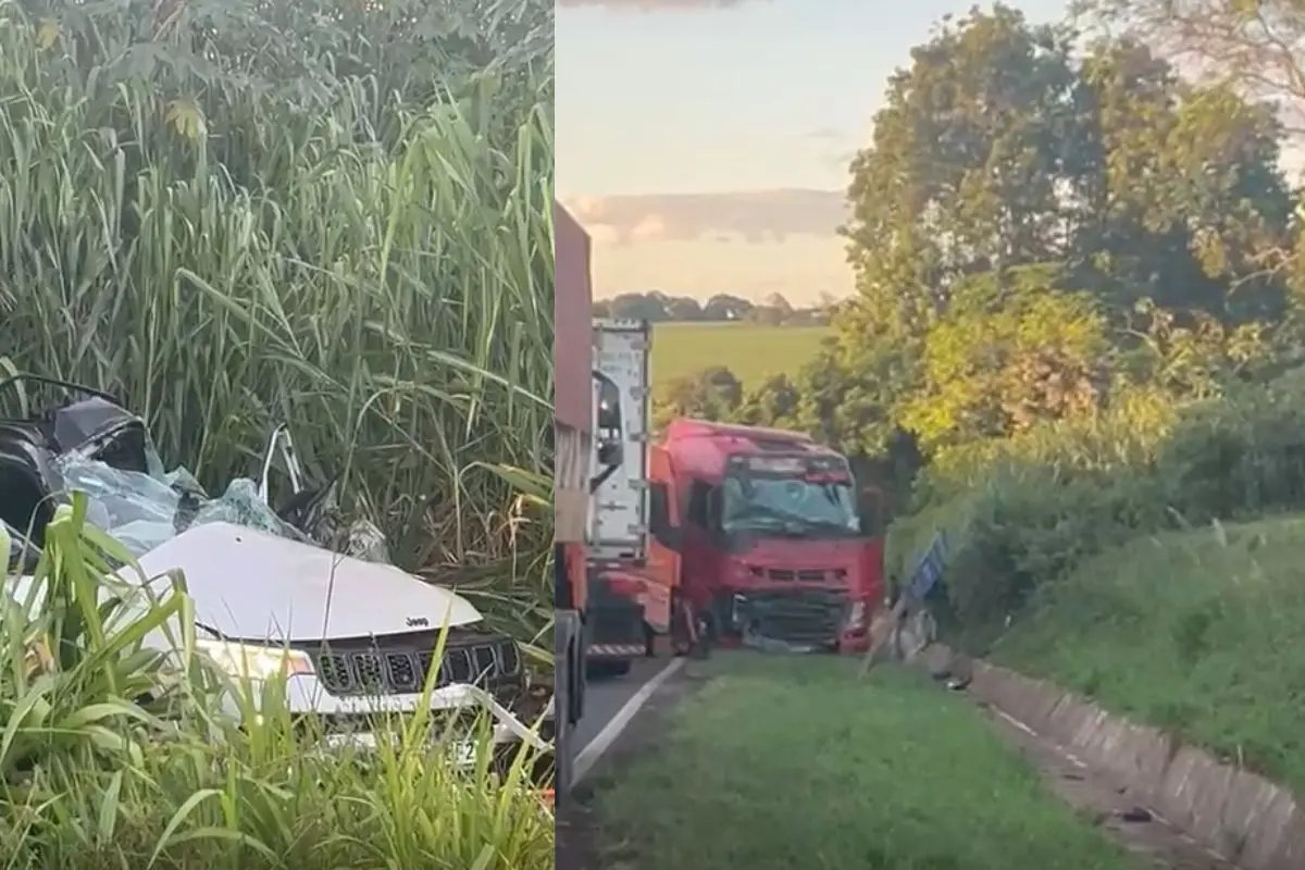 Um acidente envolvendo três carretas e um carro matou duas pessoas na BR-163, no trecho entre Caarapó e Dourados. A colisão ocorreu no fim da