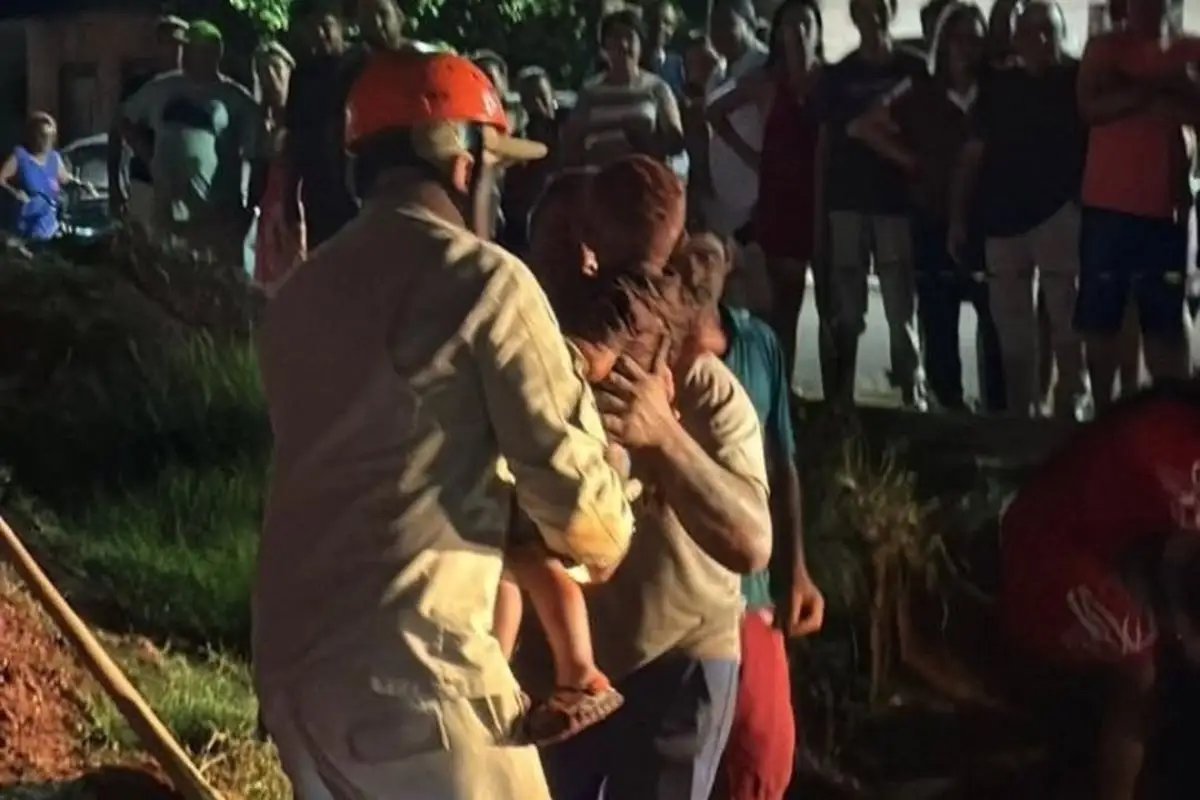 Vídeo do resgate do menino Yan, de apenas 2 anos, que caiu em um buraco com 4 metros de profundidade na noite deste sábado (31),