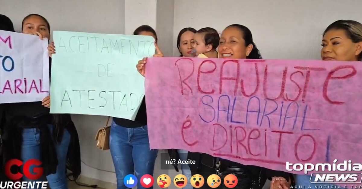 Em uma demonstração de força, servidores da educação infantil lotaram a entrada da Câmara Municipal em Campo Grande, na terça-feira (3), apesar da chuva. Eles