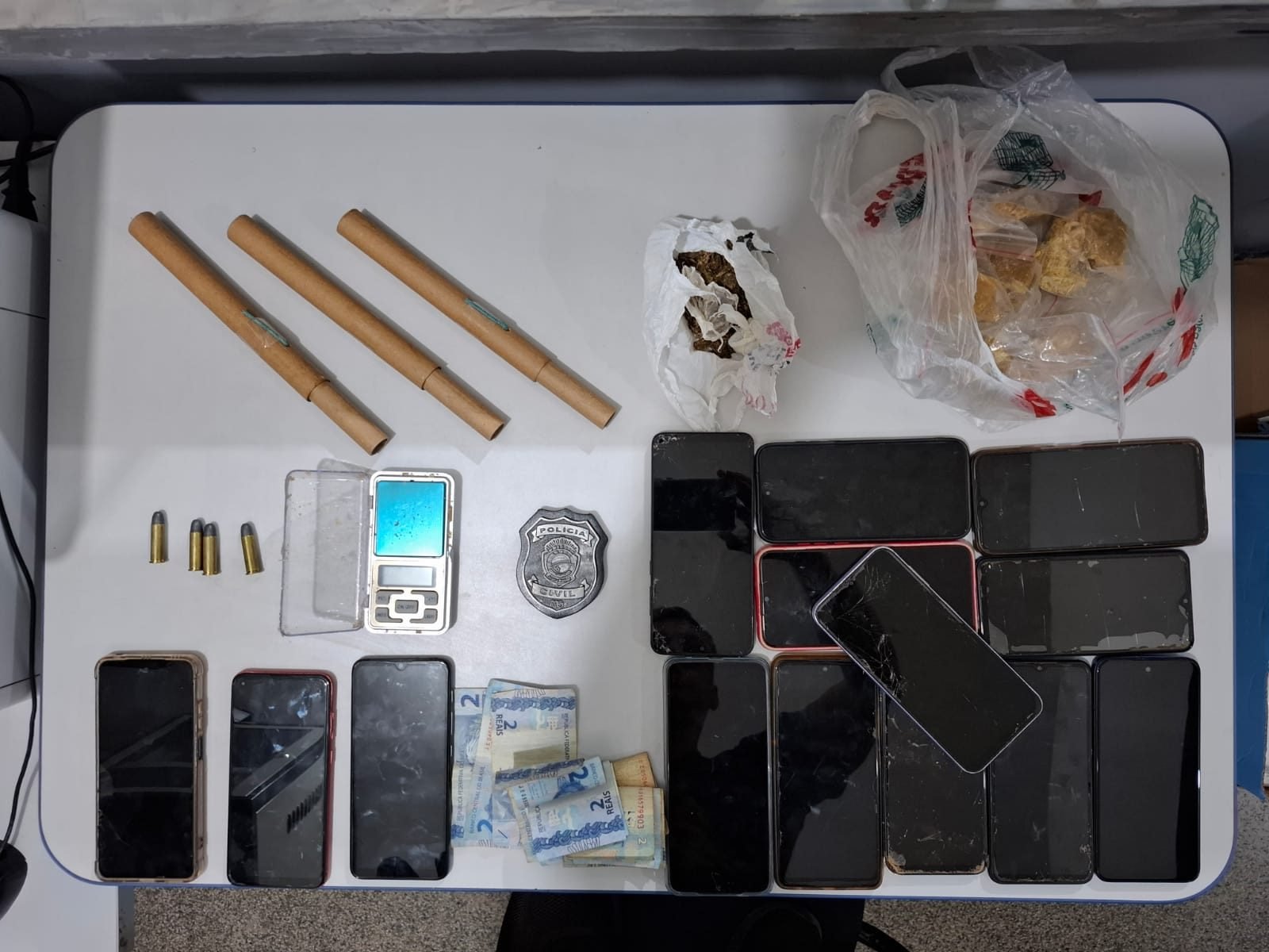 Três pessoas foram presas na tarde de quinta-feira em flagrante por tráfico de drogas e porte de munições, em uma operação realizada pela Seção de